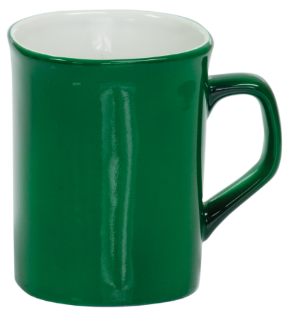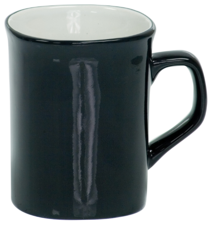 Enjoy your favorite beverage from this 10 oz rounded corner ceramic mug that is microwave safe. White lasers black for customized text.