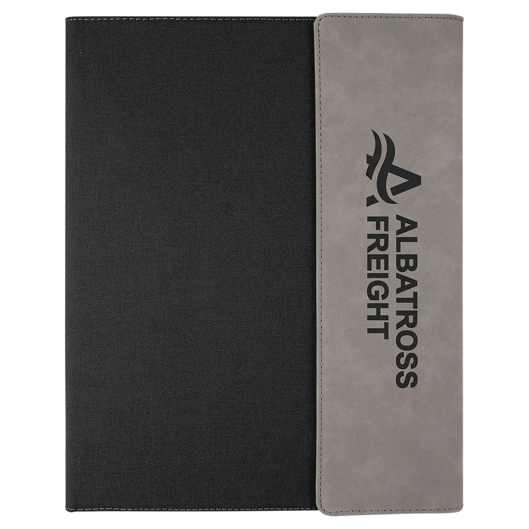 9 1/2" x 12" Laserable Leatherette / Black Canvas Portfolio with Notepad