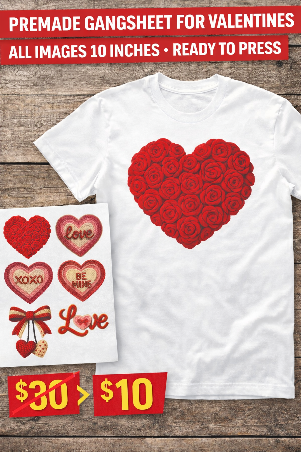 Make Valentine’s orders EASY with this premade gang sheet bundle! This sheet includes multiple festive Valentine designs, each sized at 10 inches, professionally laid out and ready to print and press.