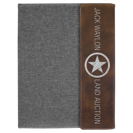 9 1/2" x 12" Laserable Leatherette / Gray Canvas Portfolio with Notepad