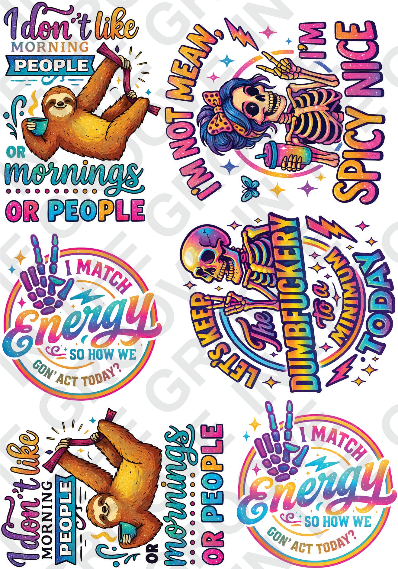 High-quality DTF transfer featuring funny skeletons with sarcastic retro vibes. Perfect for Halloween crafts, t-shirts, and year-round spooky projects. Easy to apply and durable.